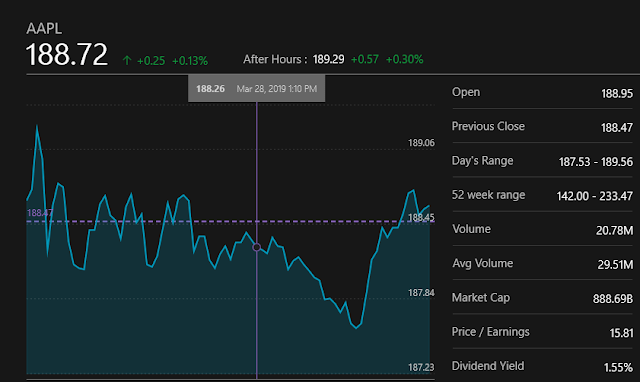 Apple is a multinational technology company that sells softwares and electronics. It became the first ever trillion-dollar company in 2019. Here are details of Apple stocks(AAPL)