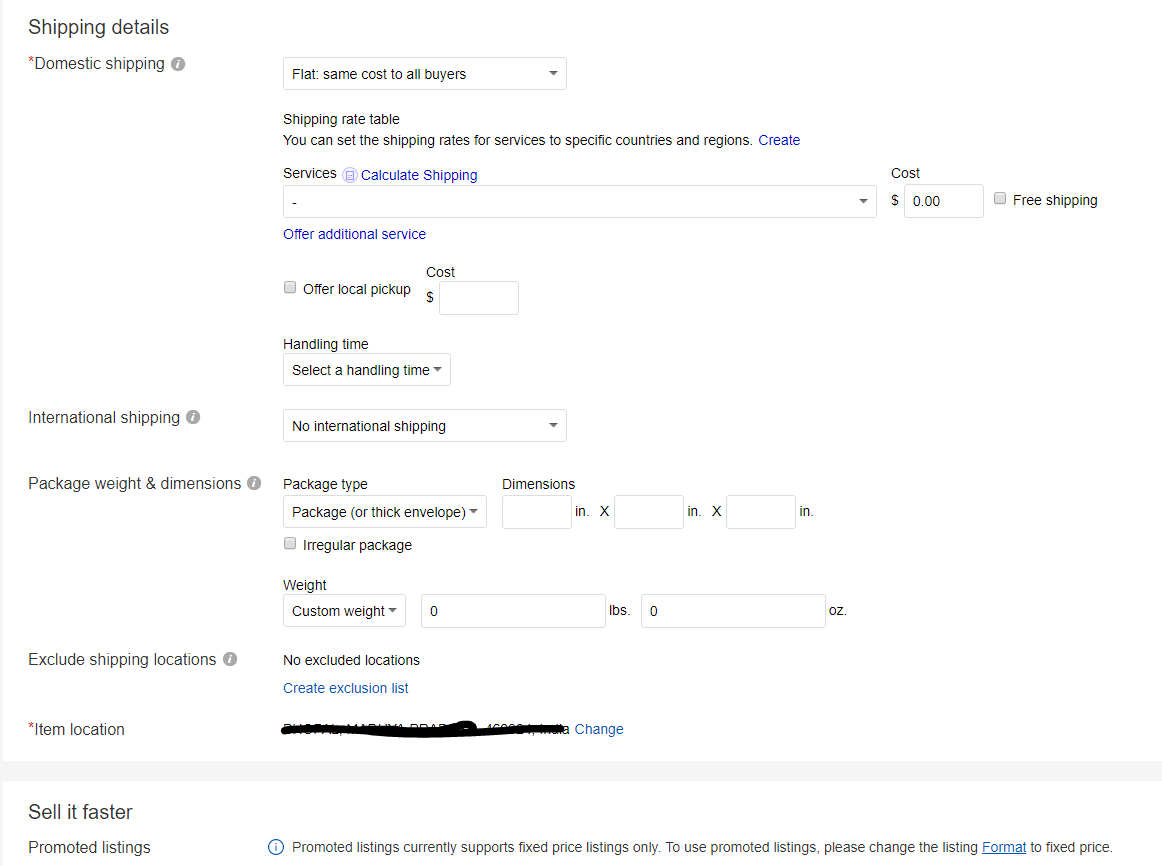 6) Shipping Details – Here you have to set shipping price(you can also set to free shipping), cost for buyers(varying according to regions) or same for everyone. Package weight and dimensions.