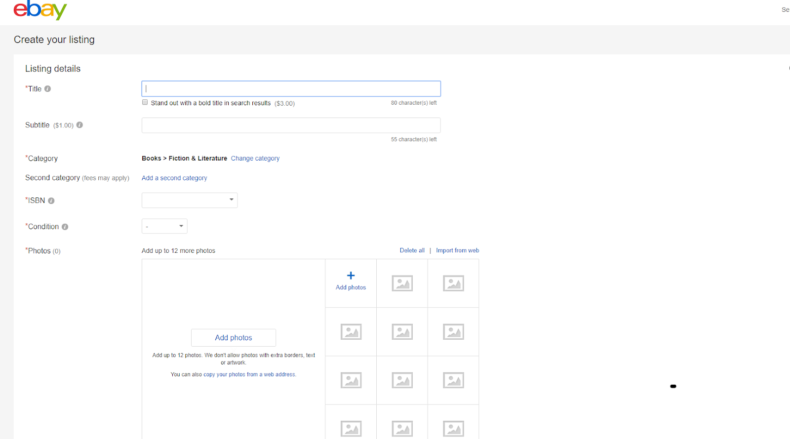 4) You will need to upload 12 photos of the item you are selling and enter the description of the item. Make sure you write a great description and upload pics from all sides to make the buyer believe that the product is authentic and you gently urge the buyer to buy that product.