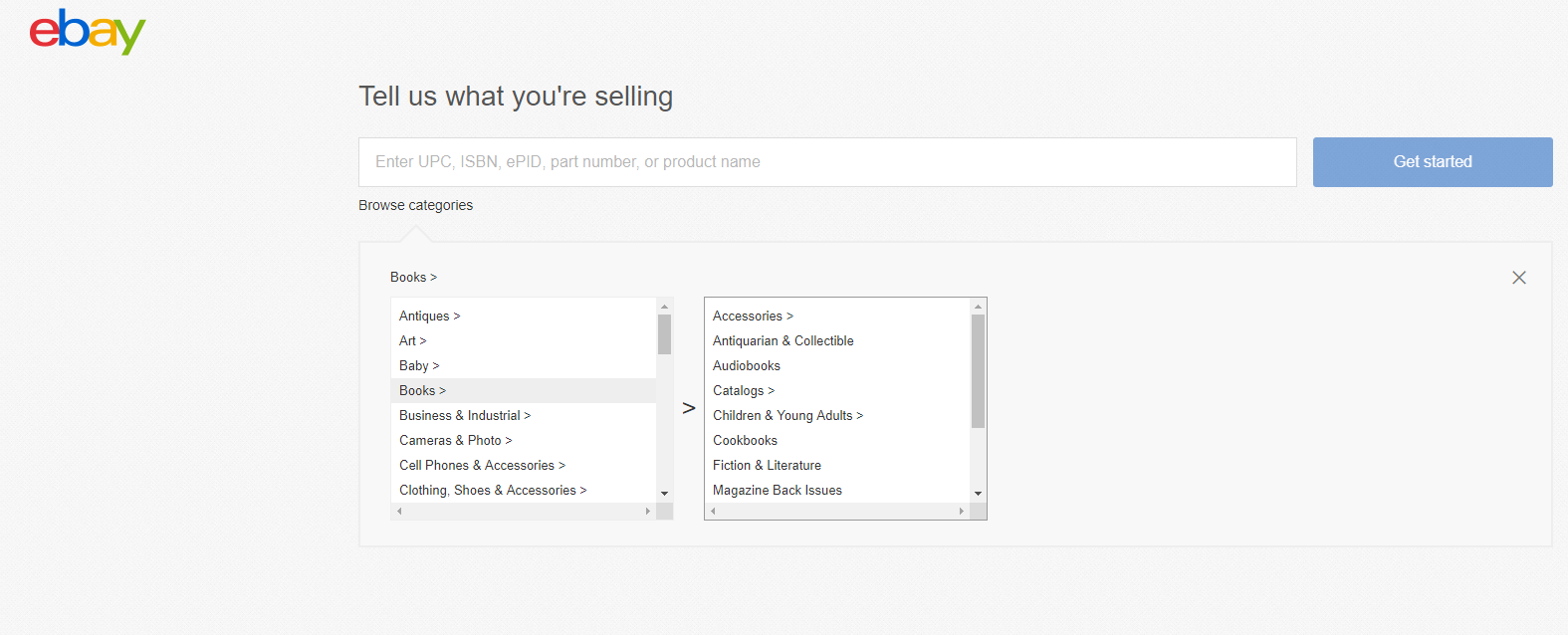 3) Enter what you are selling and the subcategory of that particular item.